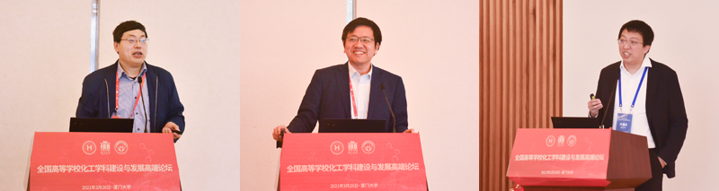 本次论坛针对不同议题开设三个分会场。在“一流化工学科建设”分会场天津大学马新宾教授、清华大学王玉军教授和大连理工大学陶胜洋教授分享了各自学校化工学科建设的经验和特色做法,共同指出创新引领、交叉融合是“一流化工学科”的未来发展趋势,会场专家反响强烈,畅所欲言。