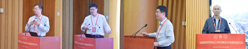 开幕式结束后,由大连理工大学彭孝军院士和中国科学院过程工程研究所张锁江院士主持,张锁江院士、天津大学副校长、教育部化工类专业教学指导委员会主任委员张凤宝教授、孙世刚院士以及中国化工学会工程伦理教育工作委员会主任委员、清华大学化工系赵劲松教授作了精彩的大会报告,分别从碳中和绿色技术、化工高等教育改革与发展规划、电能源与氢能源的发展和挑战、未来工科人才培养核心竞争力之工程伦理等不同角度,对我国高校化工学科发展进行了深入的交流和讨论。