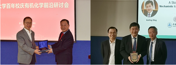 本次研讨会名家云集,精彩纷呈。南开大学周其林院士和中科院上海有机所丁奎岭院士受邀在研讨会上做厦门大学最高层次的学术讲座——“南强学术讲座”。周其林院士报告题为“酮不对称催化氢化”,系统介绍了手性螺环铱金属配合物及其在酮不对称氢化中的应用研究,他们通过对手性催化剂的调控获得了氢化反应迄今最高的转化数(TON=4,500,000),并展示了不对称氢化方法在天然产物合成中的应用。丁奎岭院士带来题为“A Story of SKP/Pd Catalyst: Mechanistic Understanding, Process Innovation and Drug Discovery”的报告,系统介绍了手性芳香螺缩酮钯金属配合物的合成方法、反应机理及其在不对称催化领域的应用研究。