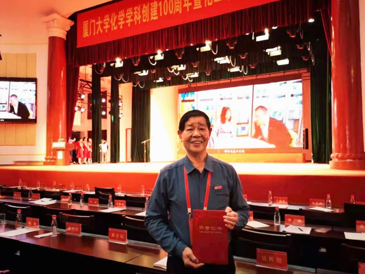 在众多校友的一致倡议下,粤港澳大湾区厦门大学化学化工校友会正式发起增设百年院庆“特别园丁奖”。获奖人员每年由粤港澳大湾区厦门大学化学化工校友会进行提名,并报yl6809永利官网协商确定最终获奖名单。今年共评选出潘容华、王火、安丽思、杨汉钊、苏循荣、刘金桂、郭祥群、陈毅辉八位获奖者。其中,潘容华、王火、安丽思、苏循荣、郭祥群、陈毅辉为yl6809永利官网离退休教职工,刘金桂为厦门理工学院退休教职工,杨汉钊为经济学院退休教师。4月7日,厦门大学化学学科创建100周年暨化工系创办30周年发展大会在建南大会堂隆重举行。大会特别设置了奖教金颁奖仪式,刘金桂作为百年院庆“特别园丁奖”获奖代表上台领奖。