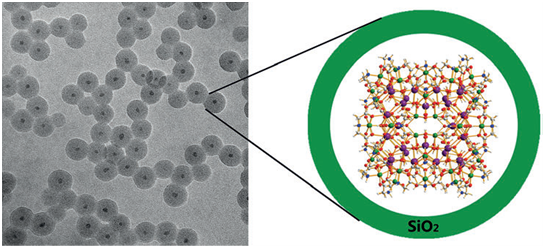 单分散的金属纳米团簇具有独特的物理和化学性质,在高密度信息存储器件、超快量子计算、高活性单分子催化等领域有潜在的应用前景。但如何获得单分散金属团簇单分子是目前金属团簇化学面临的重要挑战之一。该课题组利用利用反相微乳法,成功地实现了单分散金属团簇分子Gd52Ni56@SiO2合成,从而实现了金属纳米团簇的单分子化。磁性研究表明:单分散金属团簇分子Gd52Ni56@SiO2分子在保持包覆前Gd52Ni56簇合物本身的磁性同时,也有效消除金属团簇间的相互作用。因此,该研究工作不仅提供了一种操作简单、高普适性的制备单分子纳米团簇的新方法,也为研究单分散纳米团簇的性能提供了实验基础。