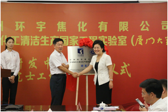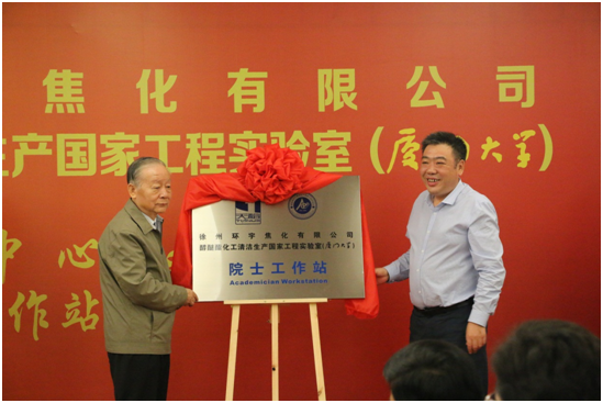 9月16日,“江苏天裕能源化工集团(徐州环宇焦化有限公司)--醇醚酯化工清洁生产国家工程实验室(厦门大学)研发中心”暨“环宇焦化—厦门大学院士工作站”揭牌仪式在徐州环宇焦化有限公司隆重举行。厦门大学校长助理滕伯刚教授、徐州市鼓楼区龚维芳区长,厦门大学万惠霖院士、江苏天裕能源化工集团滕道春董事长分别为研发中心和院士工作站揭牌。出席揭牌仪式的我校人员还有yl6809永利官网林辉书记、醇醚酯国家工程实验室陈秉辉副主任、王沈扬副主任和科技处知识产权办陈永秀主任。